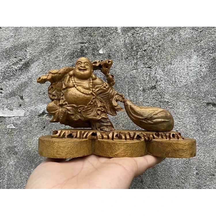 Tượng phật Di Lặc gỗ trầm hương sánh chìm tự nhiên cầu may mắn, sức khoẻ và tài lộc để bàn thờ thần tài, bàn làm việc và taplo xe ô tô