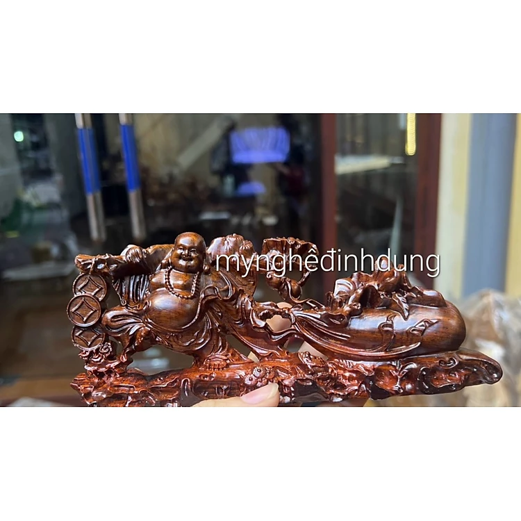 TƯỢNG PHẬT DI LẶC MiNi KÉO BAO VÀNG BẰNG GỖ TRẮC ĐỎ ĐEN KT 19×9×5CM