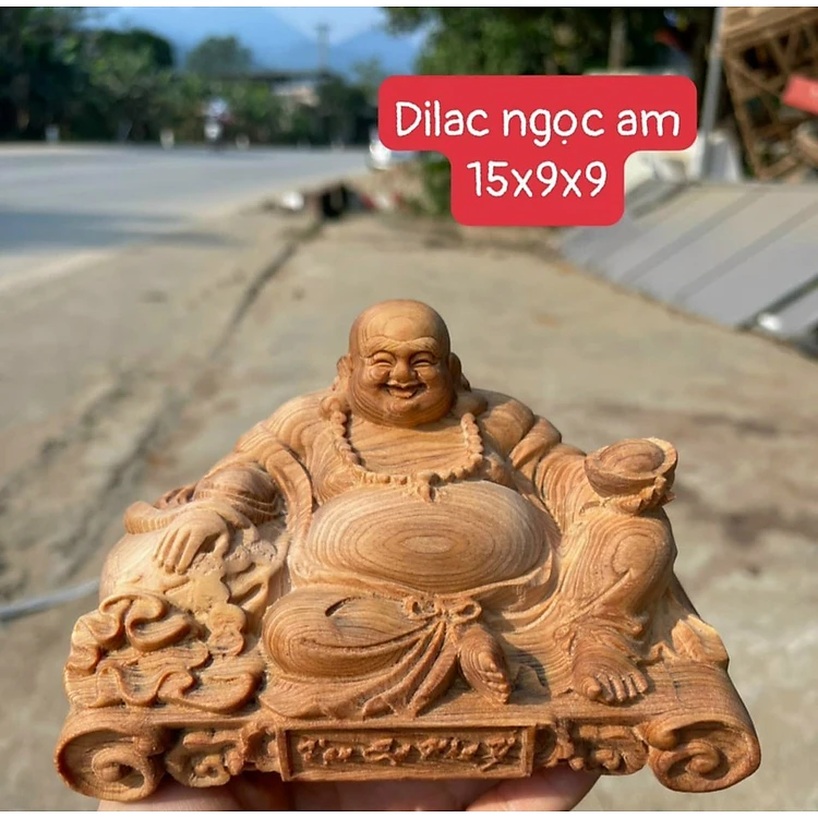 Tượng phật di lặc mini bằng gỗ ngọc am thơm nức kt 15×9×9cm