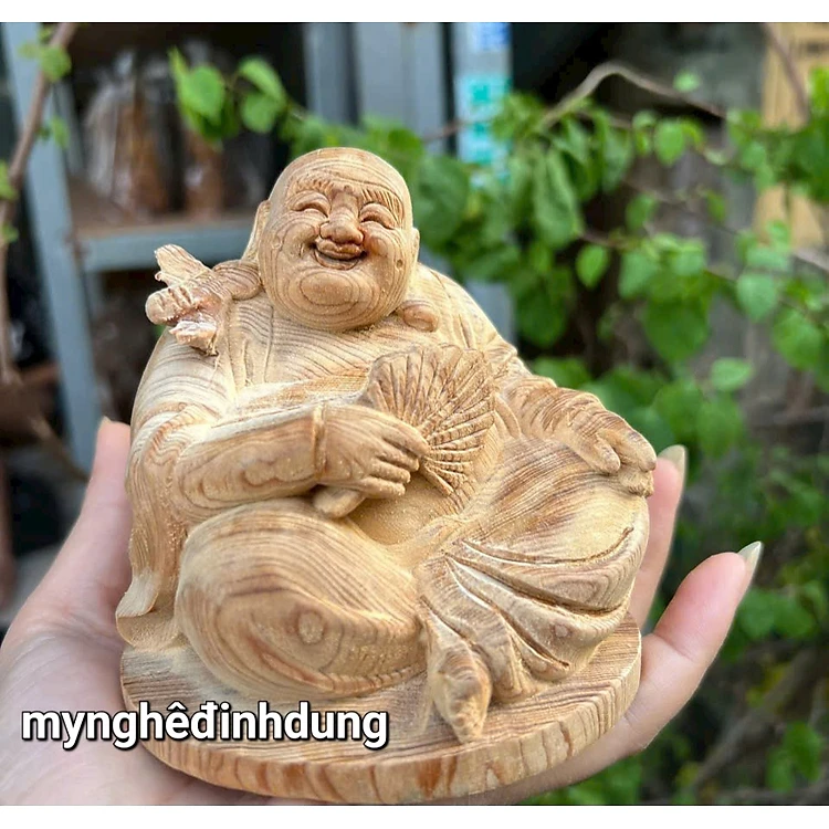 Tượng phật di lặc mini để bàn làm việc, ôtô ,láp tốp...bằng gỗ ngọc am thơm nức kt 12x10x9cm