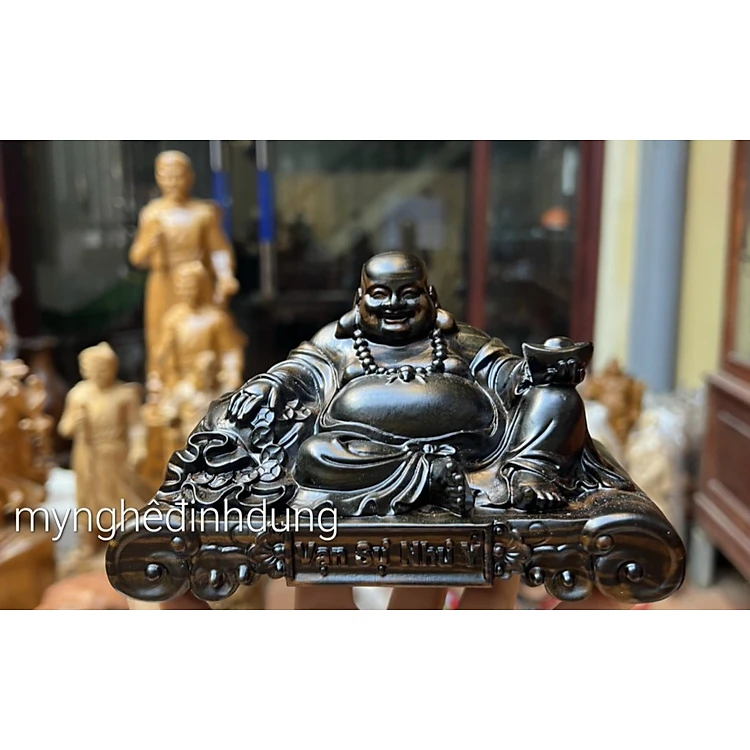 Tượng phật di lặc mini để ôtô bằng gỗ mun hoa kt 15×9×8cm