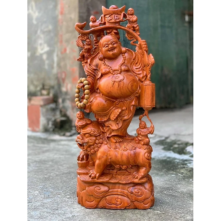 Tượng phật di lặc ngũ phúc bằng gỗ hương kt cao 60×24×23