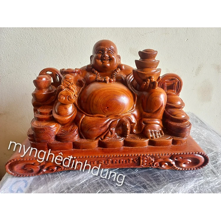 Tượng phật di lặc phong thủy để bàn tiếp khách bằng gỗ hương đá kt 50×28×26cm