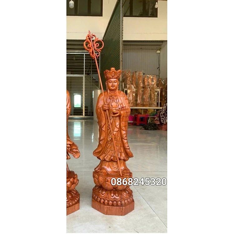 Tượng phật địa tạng vương bồ tát bằng gỗ hương đá kt cao 50×14cm