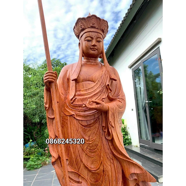 Tượng phật địa tạng vương bồ tát bằng gỗ hương đá kt cao 60×23×21cm