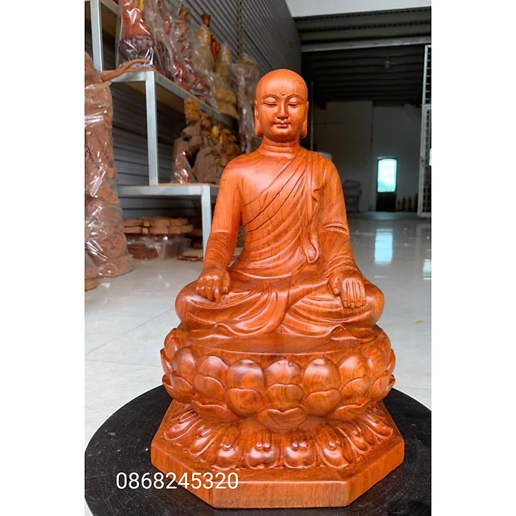 Tượng phật hoàng trần nhân tông bằng gỗ hương đá kt cao 30×19×14cm