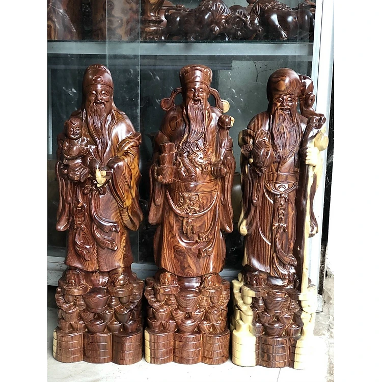 Tượng phật tam đa phúc lộc thọ bằng gỗ trắc cao 40×11×13cm
