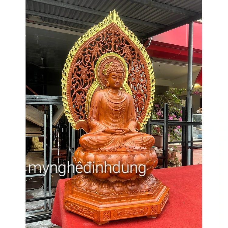 Tượng phật thích ca bằng gỗ hương đá kt cao 60×36×36cm +lá chắn hào quang cao tổng 81cm