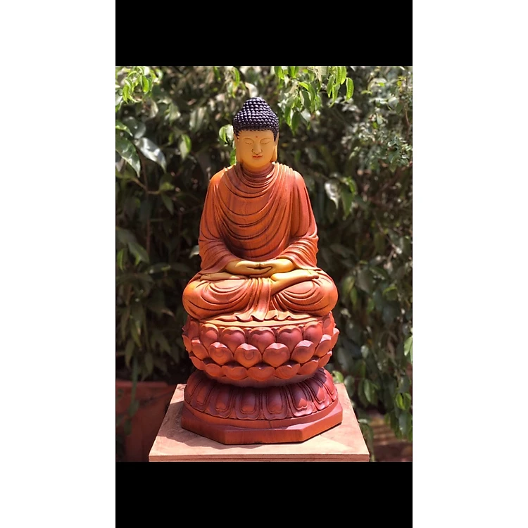 Tượng phật thích ca bằng gỗ hương đá tô làm mầu giả cổ kt cao 40×20×20cm