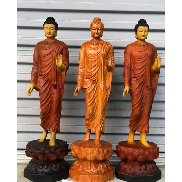 Tượng phật thích ca khất thực bằng gỗ hương đá kt cao 60