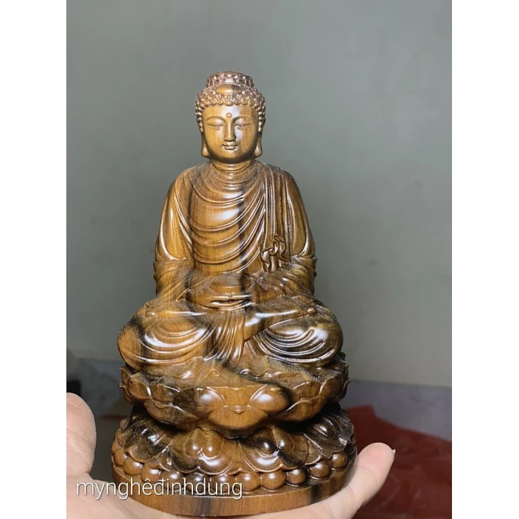 Tượng phật thích ca mẫu ni bằng gỗ bách xanh thơm nức kt cao 15×9×8cm