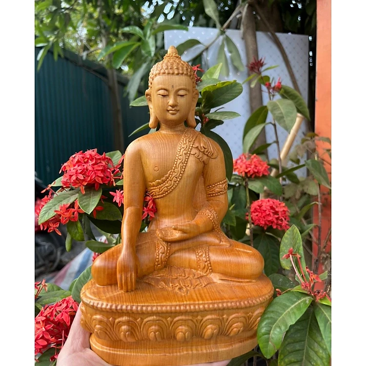 Tượng phật thích ca phái nam tông bằng gỗ pơmu kt cao 28×18×12cm