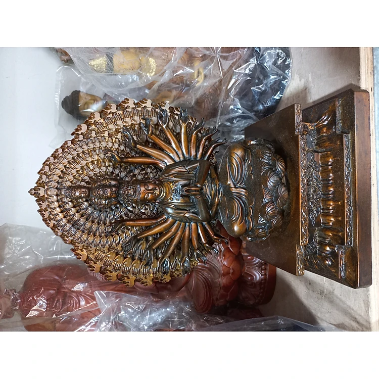 Tượng phật thiên thủ thiên nhãn nghìn mắt nghìn tay bằng gỗ hương làm mầu giả cổ kt 30×20×15cm