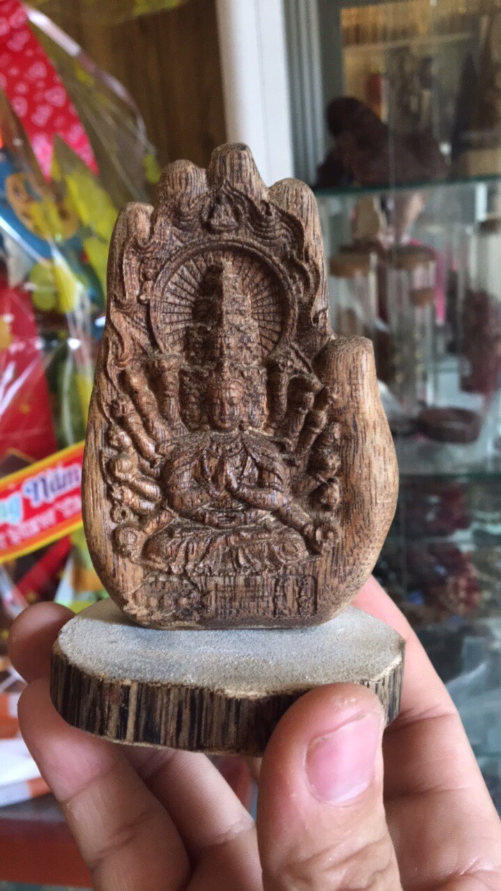 Tượng phật Thiên Thủ Thiên Nhãn phong thủy gỗ trầm hương tự nhiên cầu bình an, may mắn, sức khoẻ và tài lộc để bàn làm việc, taplo xe ô tô