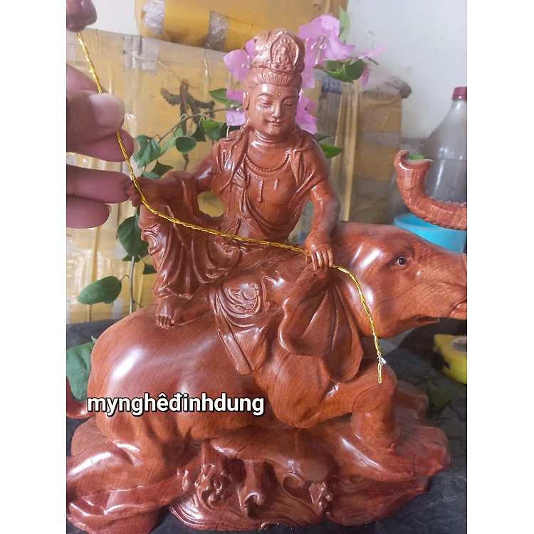 Tượng phật phố hiền bồ tát bằng gỗ hương đá đẹp long lanh kt cao 30x28x12cm