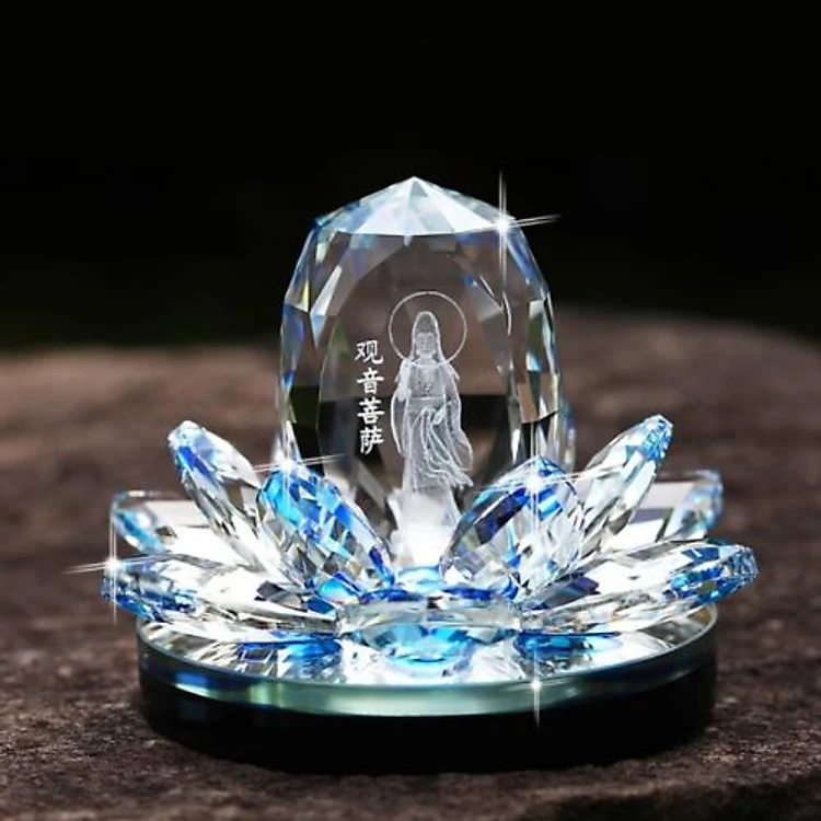 TƯỢNG QUAN ÂM BỒ TÁT ĐỨNG TRÊN ĐÀI SEN BẰNG PHA LÊ TRANG TRÍ TAPLO XE Ô TÔ