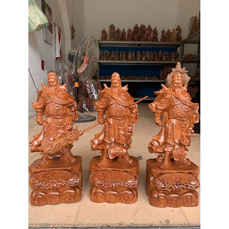 Tượng quan công sách đao trấn ải bằng gỗ hương đá kt cao 40×16×11cm