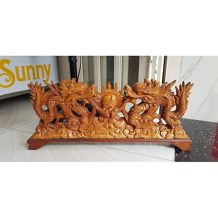 Tượng 2 Con Rồng Lượn Gỗ Gõ màu đỏ size Dài 64cm x Cao 17cm x Sâu 7cm 2 con rồng lượn phun lửa biểu tượng cho sức mạnh của người đứng đầu người lãnh đạo công ty, người chủ trong gia đình thật trưng phòng khách , bàn làm việc to quà tặng ý nghĩa ạ