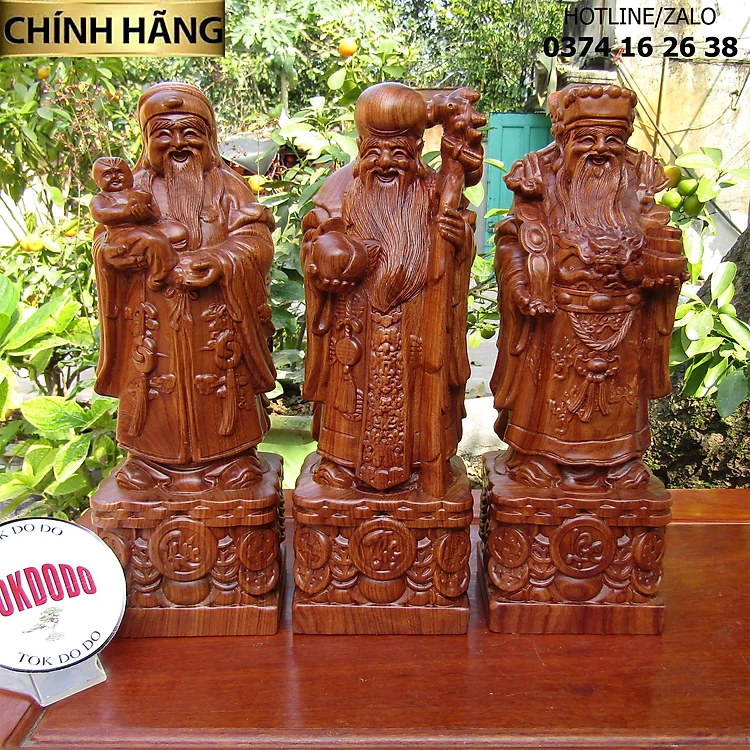 Tượng Tam Đa - Phúc Lộc Thọ Gỗ Nguyên Khối Hàng Thương Hiệu TOKDODO Nhiều Kích Thước.