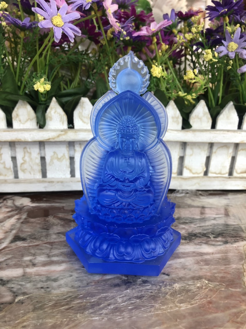 Tượng Tam Thế Phật Tây Phương Tam Thánh ngồi đá lưu ly - Cao 12 cm