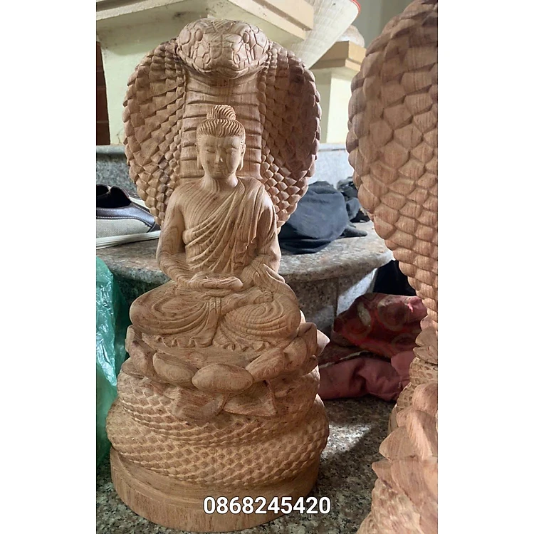 Tượng thần rắn bảo vệ đức phật bằng gỗ hương đá kt cao 40cm