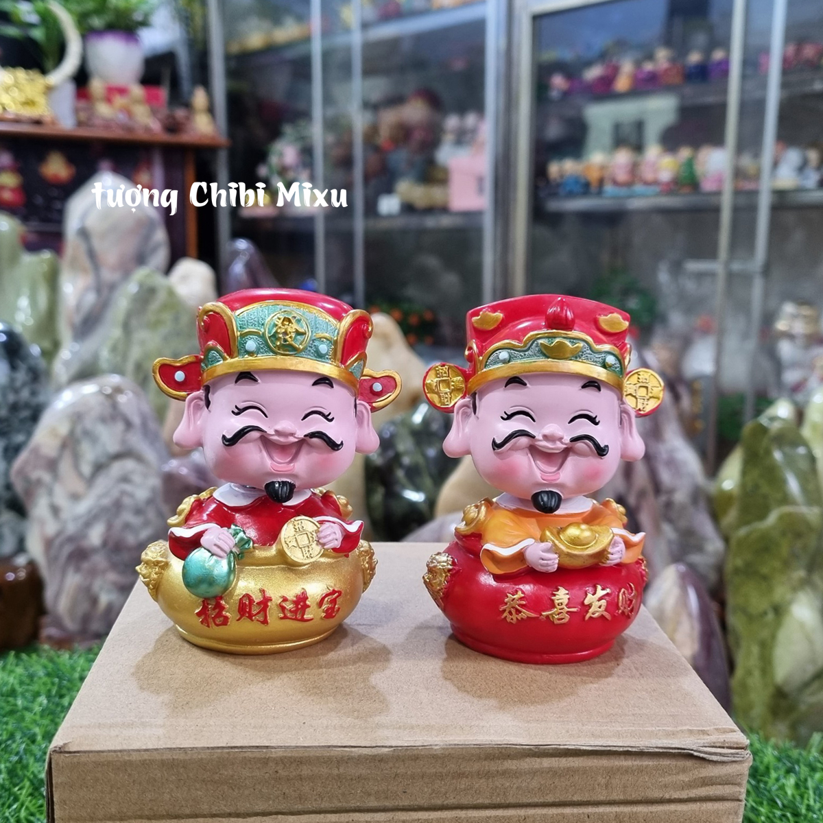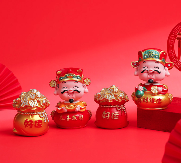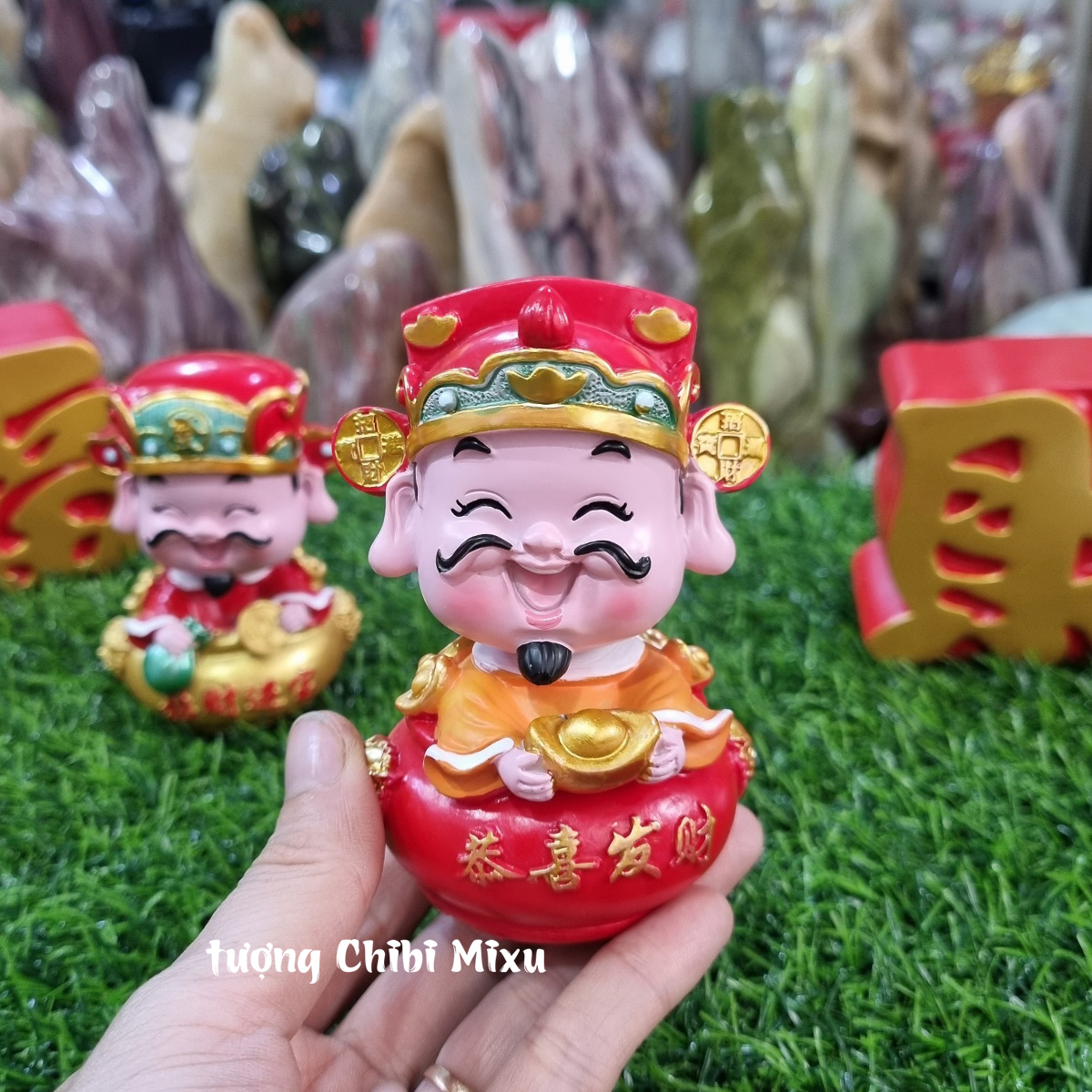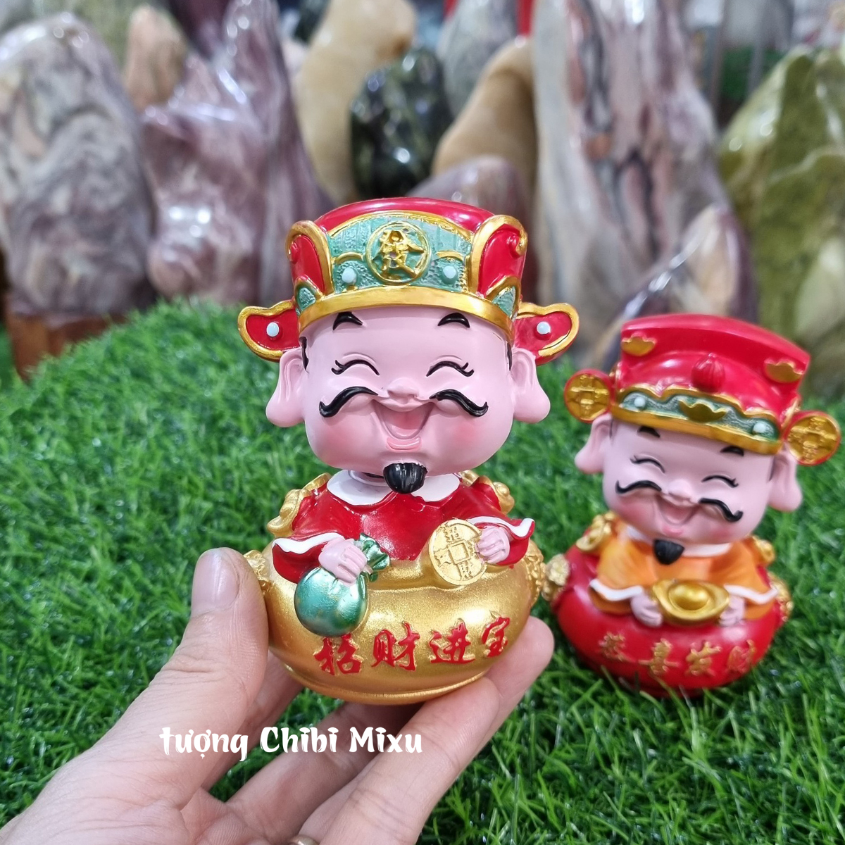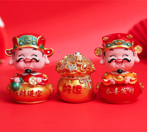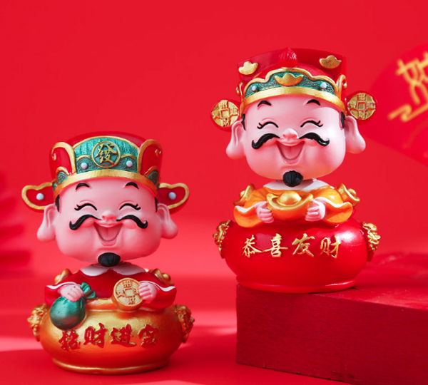 Tượng Thần Tài 10cm đầu lò xo lắc lư trang trí bàn làm việc, taplo ô tô, quà tặng