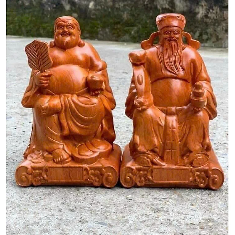 Tượng thần tài thổ địa bằng gỗ hương đá kt cao 20×12×8cm