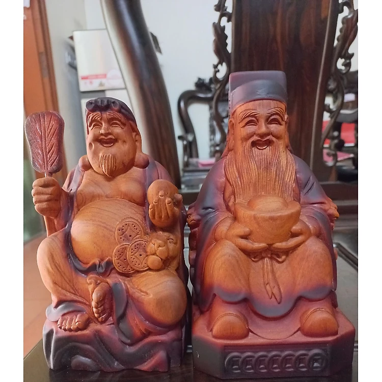Tượng thần tài thổ địa bằng gỗ hương đá sơn giả cổ kt cao 20×12×8cm