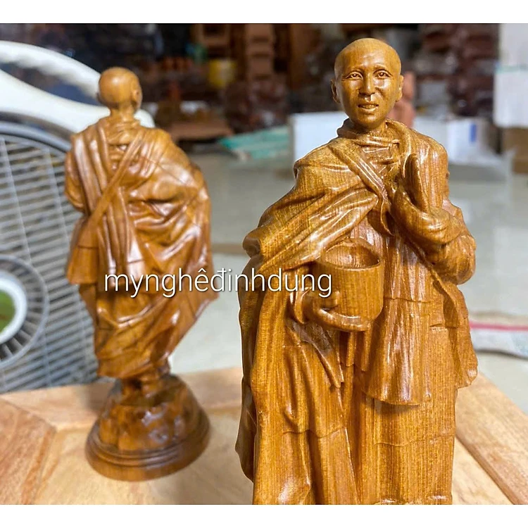 Tượng thầy thích minh tuệ bằng gỗ bách xanh thơm nức kt cao 20×8×7cm