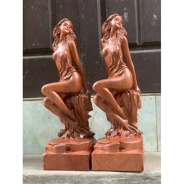 Tượng thiếu nữ nghệ thuật trang trí bằng gỗ hương kt cao 40cm