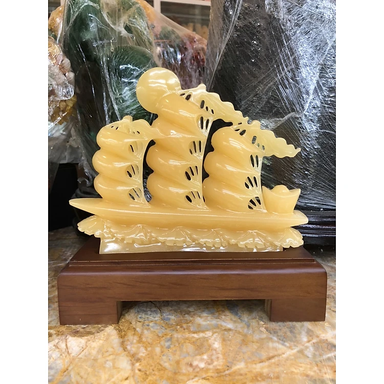 Tượng thuận buồm xuôi gió phong thủy đá ngọc Hoàng Long size nhỏ