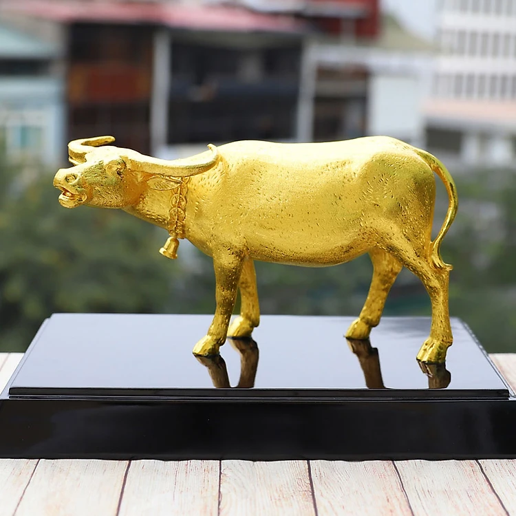 Tượng Trâu Vững Bước mạ vàng size lớn - Linh vật Trâu đồng mạ vàng 24K cao cấp