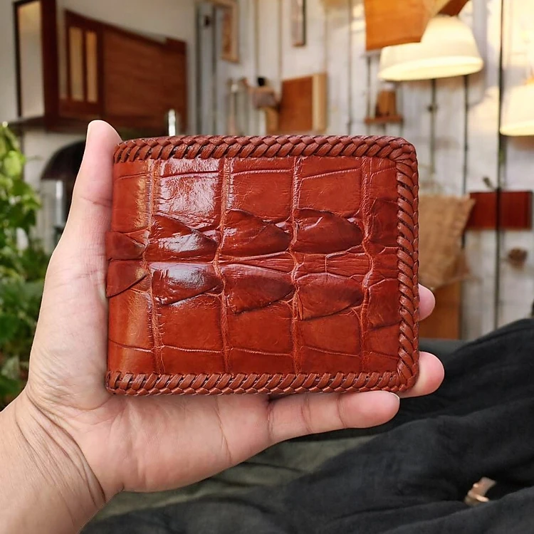 TUYỆT PHẨM.. Ví Cá Sấu Vây Đuôi 2 Mặt Đan Viền Siêu Bền!