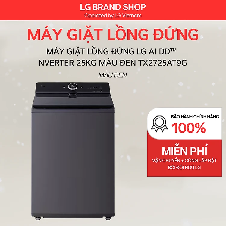 [Chỉ giao Miền Bắc/Nam] TX2725AT9G - Máy giặt lồng đứng LG AI DD Inverter 25kg màu đen TX2725AT9G_Hàng chính hãng