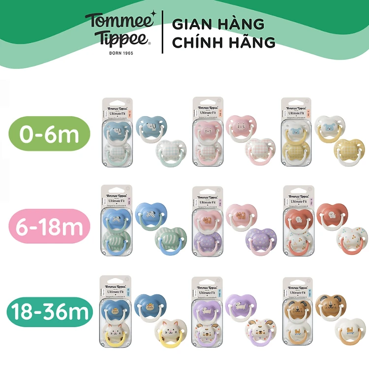 Ty Ngậm Họa Tiết Vui Nhộn Cho Bé Tommee Tippee Ultimate Fit 0-6, 6-18, 18-36 Tháng (Vỉ Đôi)