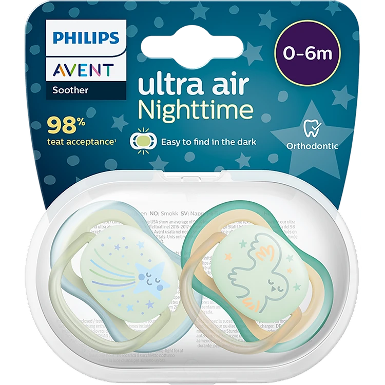 Ty ngậm Philips Avent dạ quang cho bé 0-6M (SCF376/18, vỉ đôi)