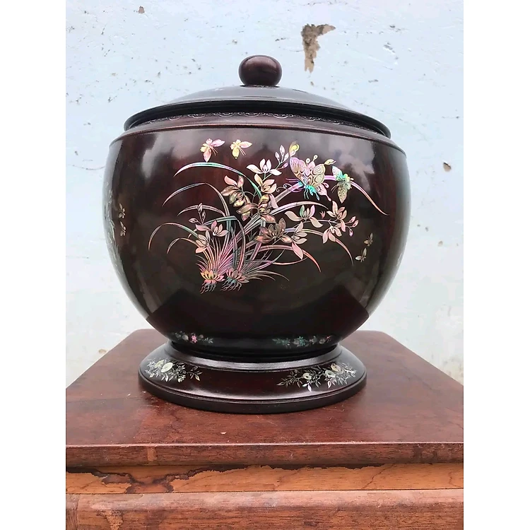 Ủ bình trà ,chè bằng gỗ gụ kết hợp khảm ốc đỏ ,làm mầu mận chín giả cổ cực đẹp kt 31×32cm