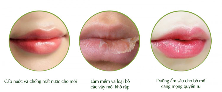 - Làm mềm, loại bỏ các tế bào môi khô sần.