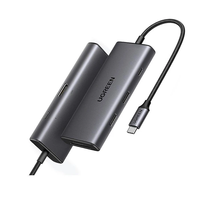 Ugreen 15531 USB type C sang 1 x HDMI 4K30Hz + 1 x USB-C 3.2 + 1 x USB-A 3.2 10Gbps + SD + TF + USB-C PD 100W Bộ chuyển 7in1 CM498 20015531 - Hàng chính hãng