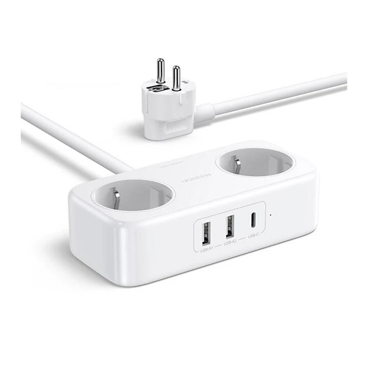 Ugreen 50683 4000W 1.8M Màu Trắng Bộ sạc đa cổng gồm 2 giắc cắm nguồn + 1 cổng USB-C 30W + 2 cổng USB-A Diginest Life 2A1C CD280 - Hàng chính hãng