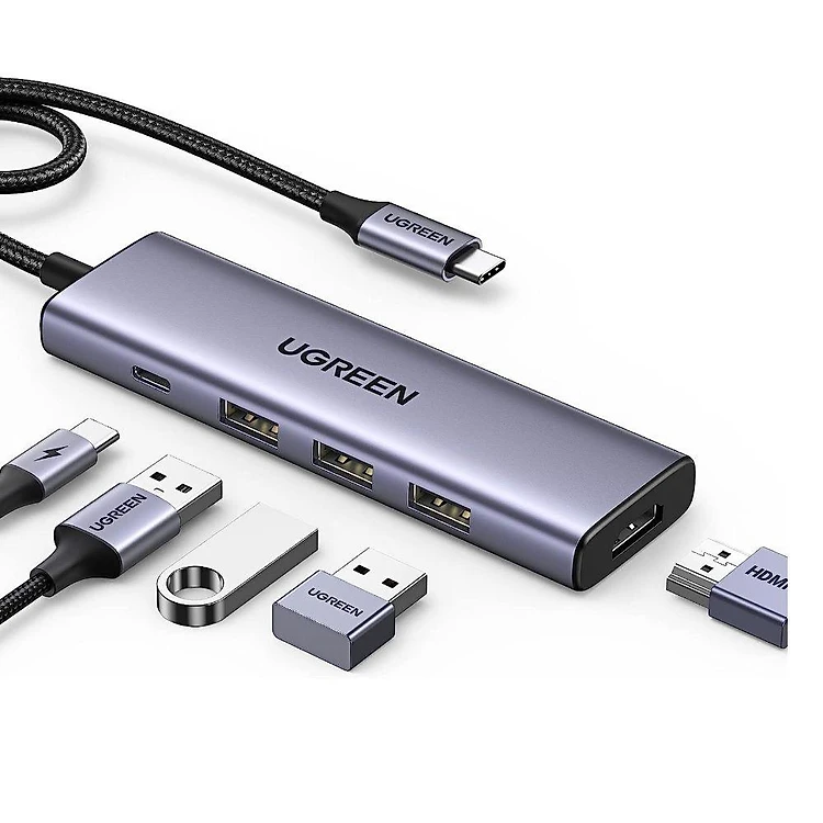 Ugreen UG15597CM511TK USB type C sang 1 x HDMI 4K60Hz + 3 x USB 3.0 + 1 x USB-C PD 100W Bộ chuyển 5in1 - HÀNG CHÍNH HÃNG