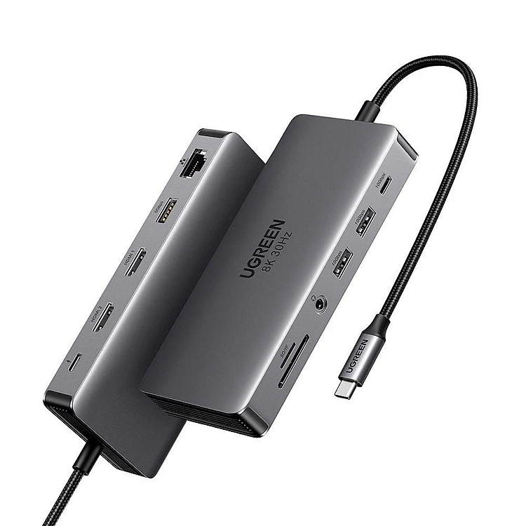 Ugreen UG15965CM681TK Hub 2 × HDMI 8k30hz - 4K60Hz + 2 × USB-A 3.2 + USB-C 3.2 + USB-A 3.0 + gigabits RJ45 + SD + TF + 3.5mm + PD Bộ chuyển đổi USB type C - HÀNG CHÍNH HÃNG