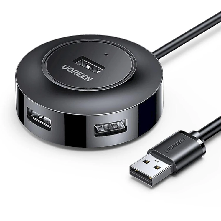 Ugreen UG30367CR106TK 2M Màu Đen Bộ chia Hub USB 2.0 sang 4 cổng USB 2.0 có đèn LED, có cổng cấp nguồn Micro USB 5V - HÀNG CHÍNH HÃNG