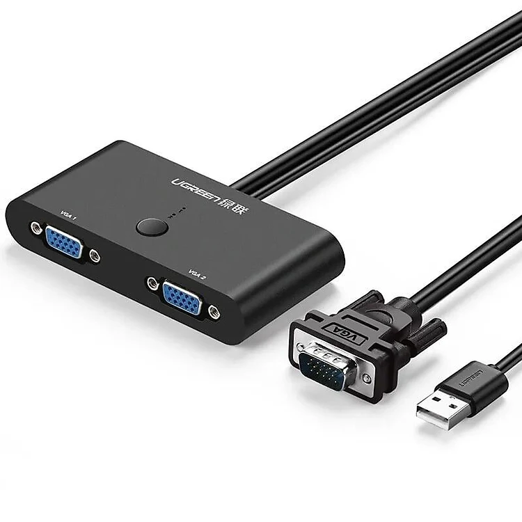 Ugreen UG30711MM126TK 1M 2 in 1 out màu Đen Bộ switch Chuyển Mạch VGA 2 cổng Cao Cấp - HÀNG CHÍNH HÃNG