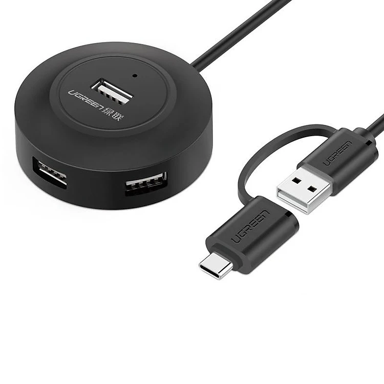 Ugreen UG40962CR106TK 0.5M Màu Đen Bộ chuyển đổi TYPE C sang 4 USB 2.0 + nguồn MICRO USB hỗ trợ OTG TYPE C - HÀNG CHÍNH HÃNG