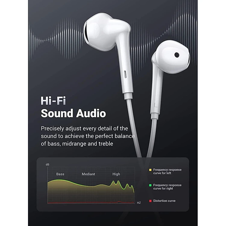 Ugreen UG60700EP101TK USB-C Màu Trắng Tai nghe nhét tai cổng Type-C có điều khiển âm lượng - HÀNG CHÍNH HÃNG