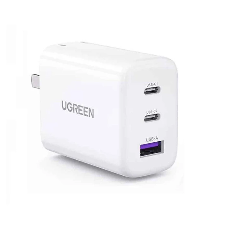 Ugreen UG90495CD275TK 65W Bộ sạc nhanh xe hơi 2cổng USB-C + USB-A PD3.0 QC4.0 Màu Trắng chuẩn cắm US - HÀNG CHÍNH HÃNG