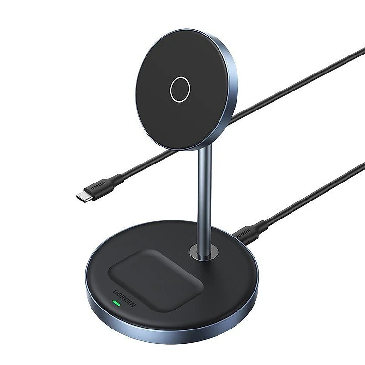 Ugreen UG90668CD317TK 20W MagSafe cho Iphone + air pod Bộ sạc hit từ tính không dây 2 trong 1 Màu Đen - HÀNG CHÍNH HÃNG