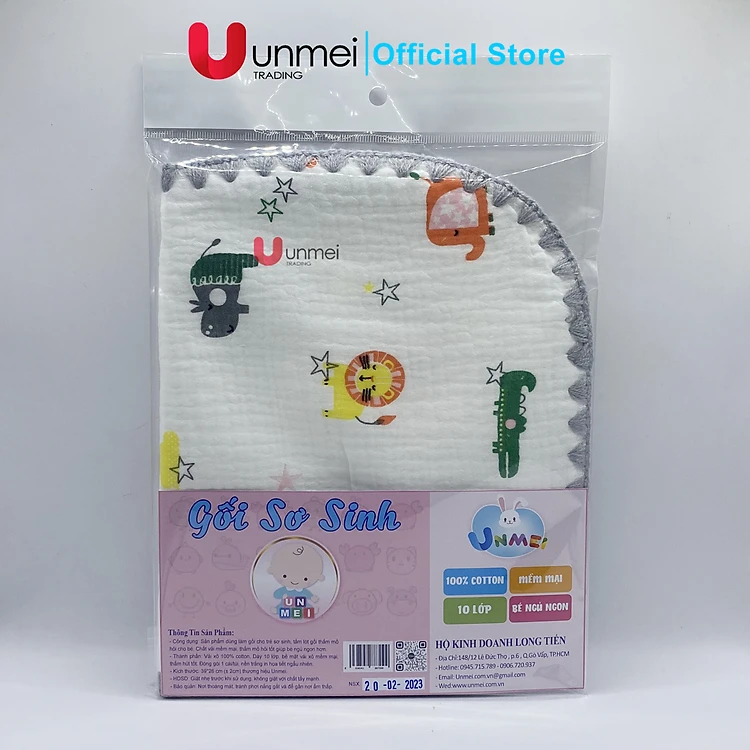 UNMEI - Gối Xô Sơ Sinh, Gối Xô Sợi Tre Mềm Mịn 10 Lớp 100% Cotton Cao Cấp Thấm Hút Mồ Hôi Cho Bé Sơ Sinh