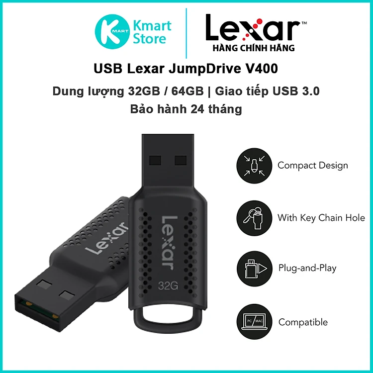 USB 3.0 Lexar JumpDrive V400 | Dung lượng 32GB / 64GB | Bảo hành 2 năm - Hàng Chính Hãng